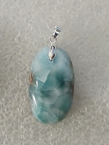 Le larimar est une pectolite bleue, verte ou grise avec des veines blanches.