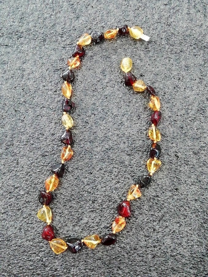 Le collier d'ambre est un bijou, et comme tout bijou, il ne faut pas laisser un enfant de moins de 3 ans le porter sans surveillance, et encore moins jouer avec ou le mettre à la bouche.